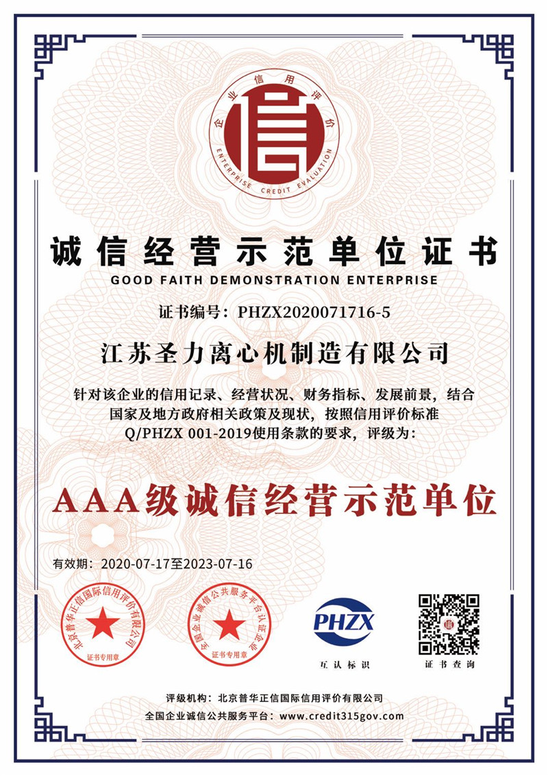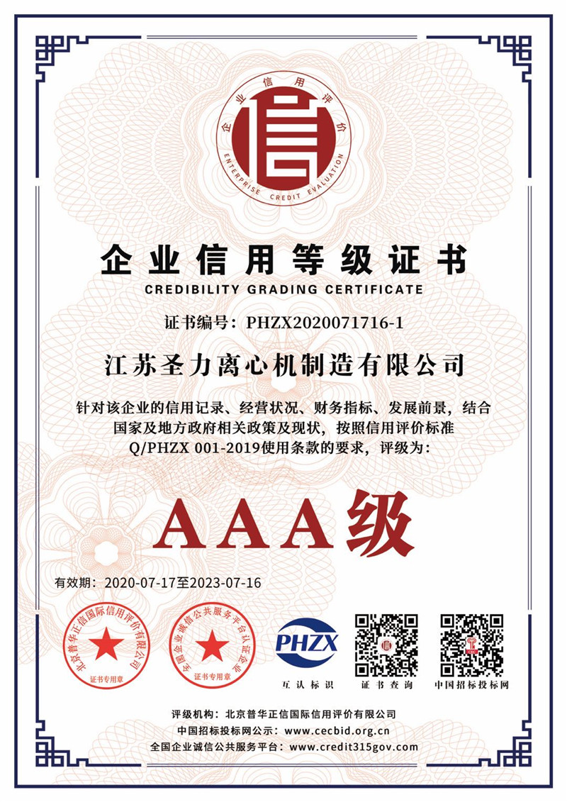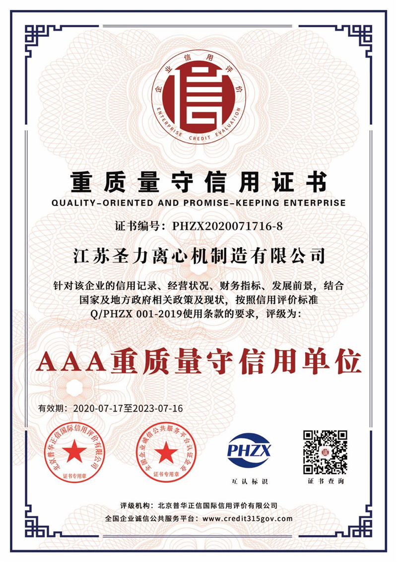 江蘇圣力離心機(jī)制造有限公司是國內(nèi)分離機(jī)械行業(yè)中主要的離心機(jī)生產(chǎn)企業(yè),對離心機(jī)的研究、設(shè)計(jì)、制造有多年的歷史,擁有齊全的設(shè)備、完善的檢測手段。公司已通過IS09000國際質(zhì)量體系認(rèn)證、ISO14001環(huán)境管理體系認(rèn)證、ISO45001:2018職業(yè)健康安全管理體系認(rèn)證和CE認(rèn)證,是江蘇省高新技術(shù)企業(yè),曾榮獲國家和地方多項(xiàng)榮譽(yù)稱號。